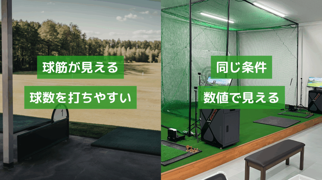 打ちっぱなしとインドア、どちらが正解という話ではありません。