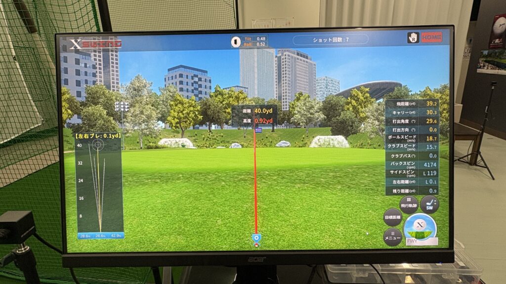 - シミュレーター上でキャリーとトータル距離が数値で表示される