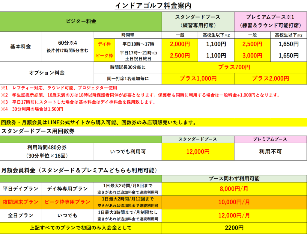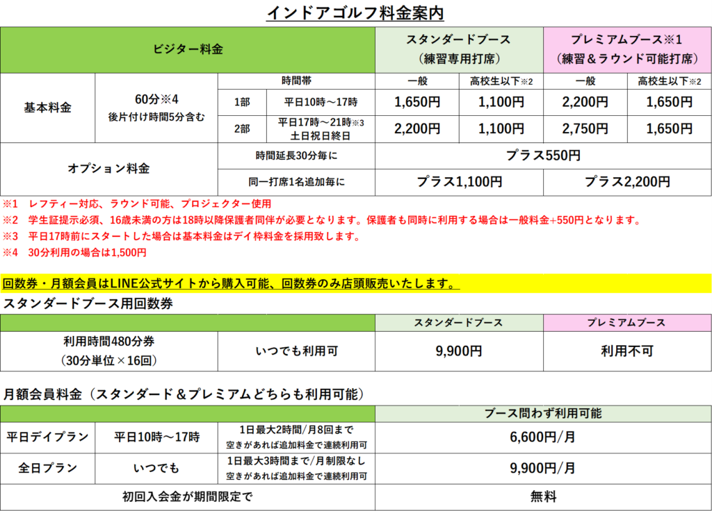 2026年7月1日よりインドアゴルフの料金を改定させていただくこととなりました。